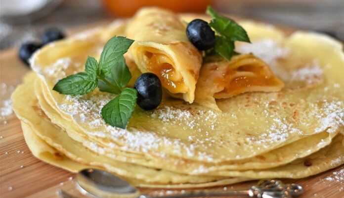 Излупете ги јапонските јаболка и исечкајте ги на ленти, а потоа ставете ги да се варат во подлабока тава заедно со шеќерот, каранфилчињата, циметот и лимонот околу 20 минути, се` додека не омекнат. Потоа додадете го пченкарното брашно и варете уште 5 до 10 минути, па тргнете го компотот од огнот. Испечете ги палачинките, а потоа филувајте ги така што ќе додадете лажица маскарпоне сирење, кое ќе го полиете со компот од јапонски јаболка.