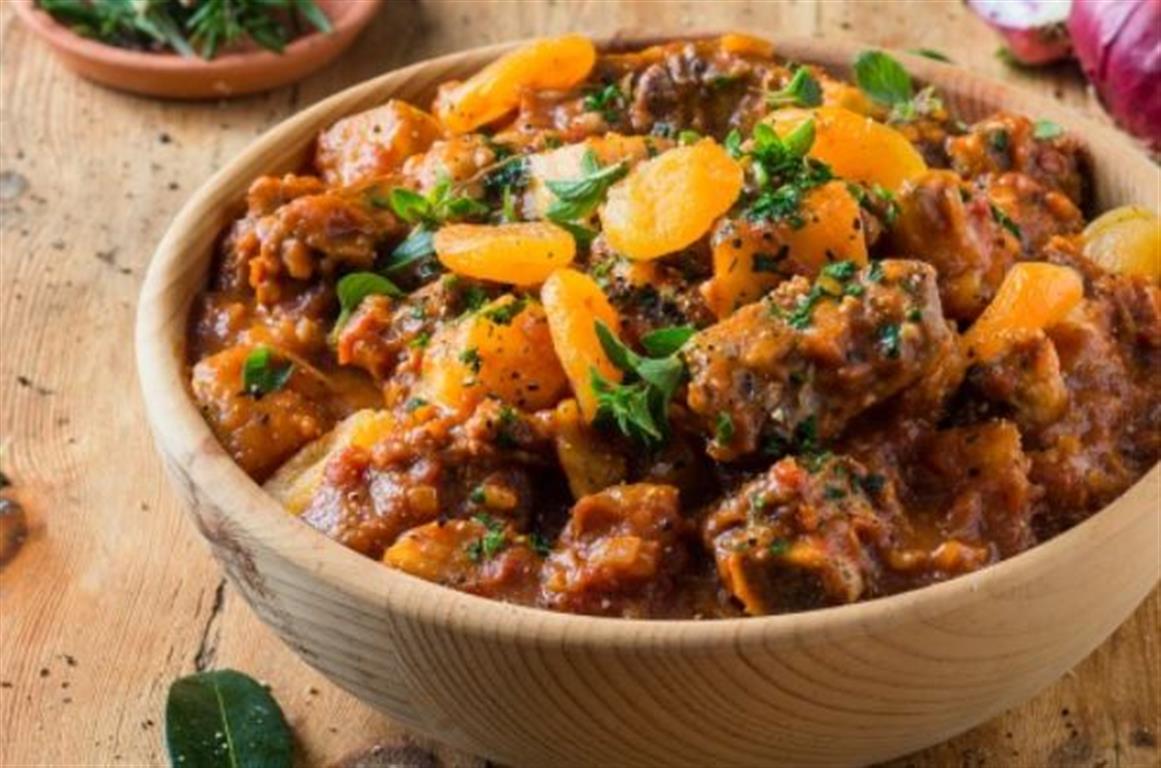 Потребно е – 1,5 кг пилешко, кромид, мед, 150 г суви кајсии,100 г излупени бадеми, исечкано суво грозје (еден грст), путер, сок од 1 лимон, цимет (2 лажички), сол, литар вода и копар.